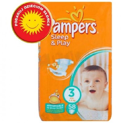 Sprzedam 2 nienapoczęte paczki pieluch Pampers Sleep & Play po 58 szt. rozm. 3 (4-9 kg.), oraz napoczętą dużą paczkę Pampers Active Baby w której zostało 65 szt. pieluszek w tym samym rozmiarze co wyżej. Cena jaka mnie interesuje to 80 zł za całość.