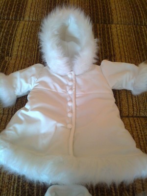 oraz ciepła śnieżno biała kurteczka(płaszczyk) ocieplana polarem z włochatym kapturkiem i rękawkami dziecko wygląda w niej przecudnie jak mały eskimosik :)płaszczyk może służyć na później.komplet jest wcale nie zniszczony zapakowany tak jak ze sklepu.kosztował 350zł mam nawet paragon ale naprawdę warto wydać takie pieniążki bo jest śliczny!zapraszam drogie mamy Z OKOLIC PAJĘCZNA,WIELUNIA,WIERUSZOWA.gratis dorzucę PUDEŁKO MLEKA BEBIKO 1 WAŻNE DO 2014ROKU CENA 220zł do negocjacji Karolina 723503762